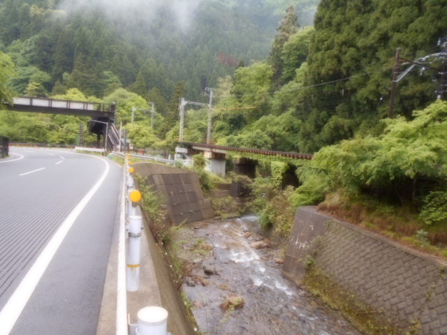 | 鞍馬川(賀茂川)に沿っての旧道を下っていますが、二ノ瀬トンネルがバイパスとして出来ていました。 |