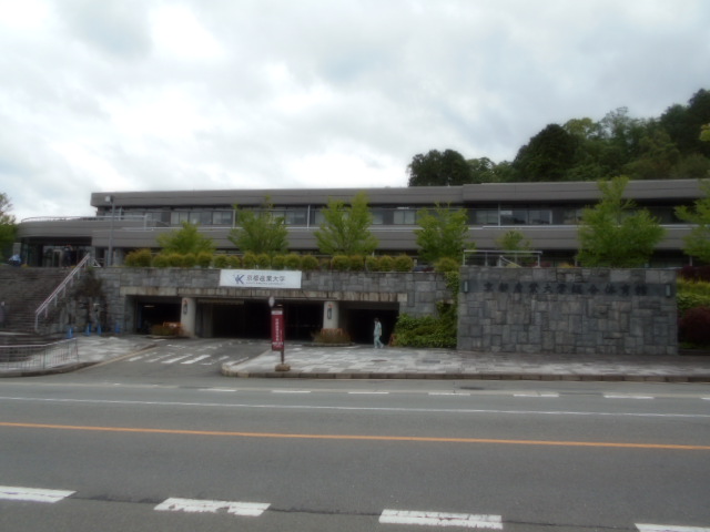 | 京都産業大学の体育館前を通っています。道を挟んで本学が広がっていました。 |