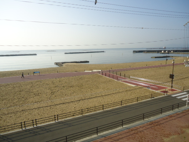 | JR須磨駅南の海岸線。今日は穏やかな海が広がっていた。 |