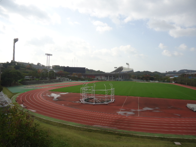 | 神戸総合運動公園の補助競技場とは言え、よく手入れされた芝生が眩しい。奥はユニバー記念競技場。 |
