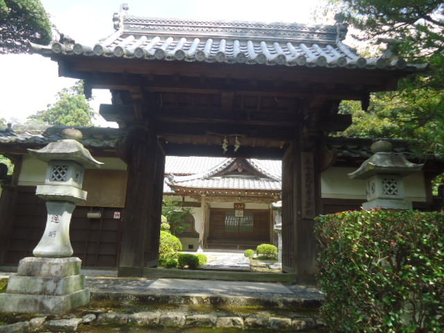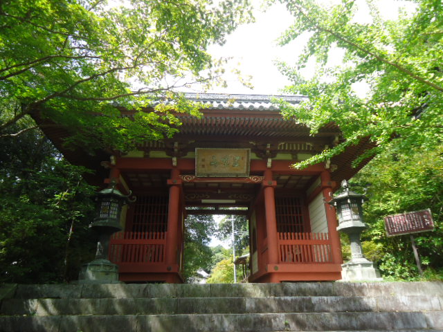 | 仁王門 この仁王門は1693年に再建された建物の一部を使用して昭和56年5に殆んど完全に復元されたものである。また奉安の阿吽一対の仁王尊像もこのたび同時に修理をしたが再検当時の造顕のもので効験あらたかなり。当山伽藍の守護神である。 〜 説明板 〜 |