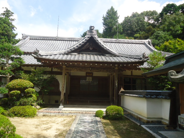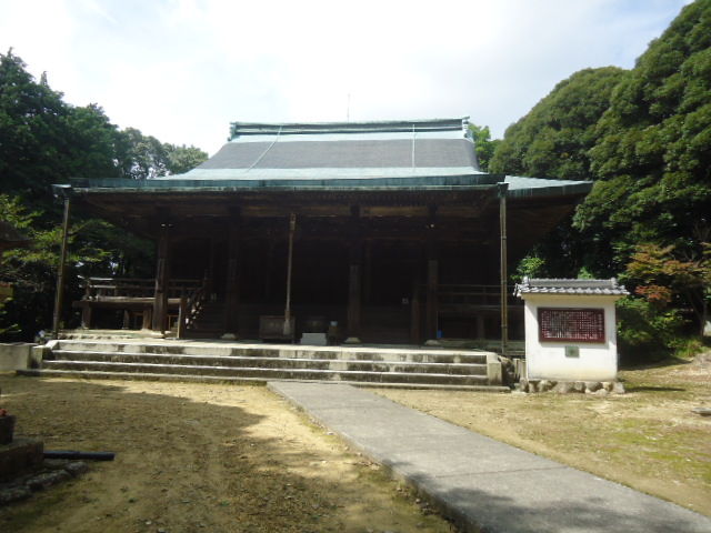 | 本堂(金堂) この建物は1925年4月 武田五一博士の設計により鎌倉時代の設計様式をもって再建されたものである。屋根は鋼板葺きの入母屋造りで九間4面の広さ(270平方メートル)をもつ。内陣の宮殿には法道仙人の作と伝えられる本尊千手十一面観世音菩薩と脇士として不動明王と毘沙門天王の二尊像を奉安する。また脇壇には当山開祖 仙道仙人・聖徳太子・宗祖 弘法大師の各尊像も合わせて安置してある。外陣は畳敷きで一山の主なる法要はここにおいて厳修される。 〜 説明板 〜 |