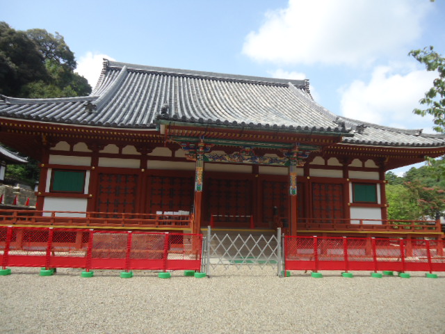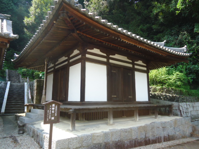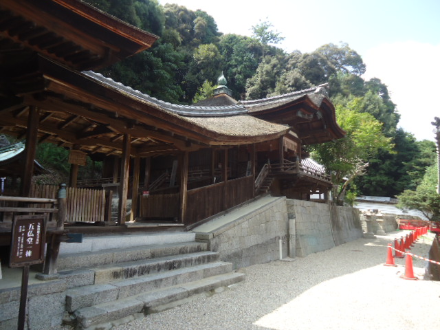 | 五仏堂 金堂が修理中なので、「仮本堂」の看板が見えます。 |