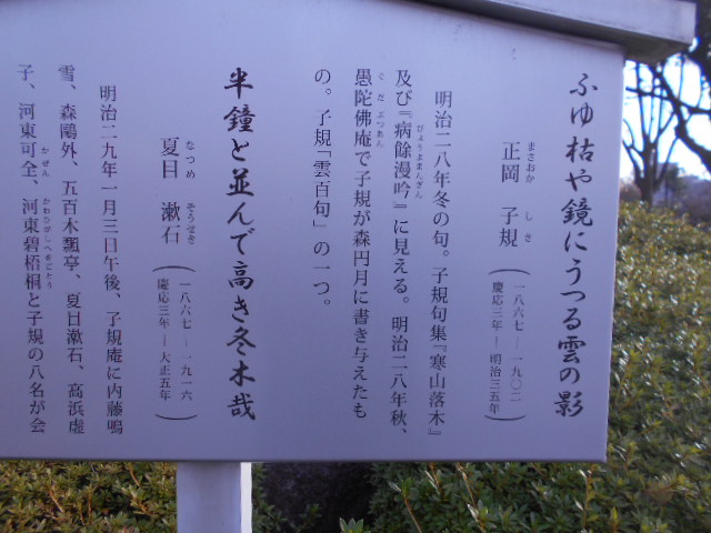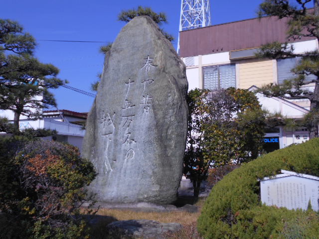 | 駅前広場の歌碑 春や昔 十五万石の 城下哉 |