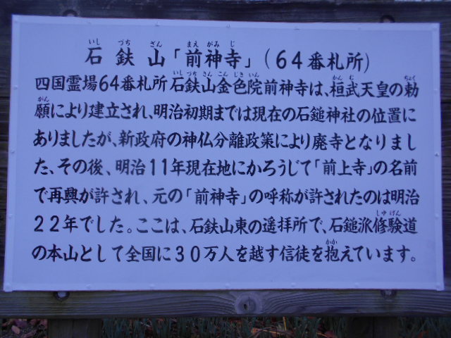 | 64番前神寺は、神仏分離政策でできた寺であり、この石槌神社から分離されてできた。 |