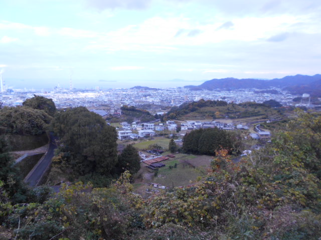 | 標高430mにある三角寺は急な坂道を登る難所。途中の夏みかん畑に中の坂道から四国中央市市街と瀬戸内海を見下ろす。 |