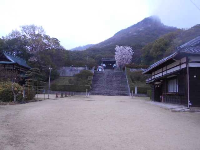 | 屋島神社 広い境内の先に階段が本殿へと導く |
