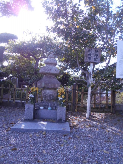 磯禅師が東かがわ市小磯の生まれだった縁から静が晩年過ごしたのがこの「剃髪塚」。静は奈良・吉野の山中で義経と別れた後、京へと帰ったが義経恋しさのあまり病気を患い、郷愁を感じていた母と共に讃岐の地へ帰ることとなった。母と共に信仰の旅へと出た静は長尾寺へ辿り着き、住職の宥意和尚から「いろはうた」などにより世の無常さを諭され、二人は得度した。静は宥意和尚の一文字をもらい「宥心尼(ゆうしんに)」、母は「磯禅尼(いそぜんに)」となった。その際に落とした静御前の髪が剃髪塚に納められているとされる。 説明板を転記 |