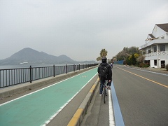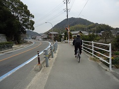 | 曇空で少し寒いくらいがサイクリングには丁度良かったかも。 | 伯方橋は桁橋。見晴らしが良かった。 | |